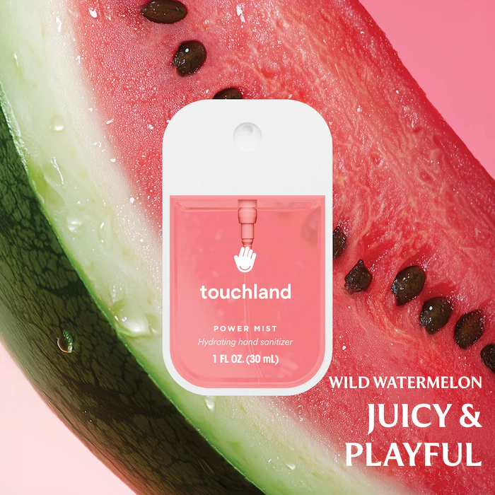 - 5 x 1 oz/ 30 mL Power Mist Hydrating Hand Sanitizer in Wild Watermelon, Berry Bliss, Vanilla Blossom, Blue Sandalwood, Rainwater.